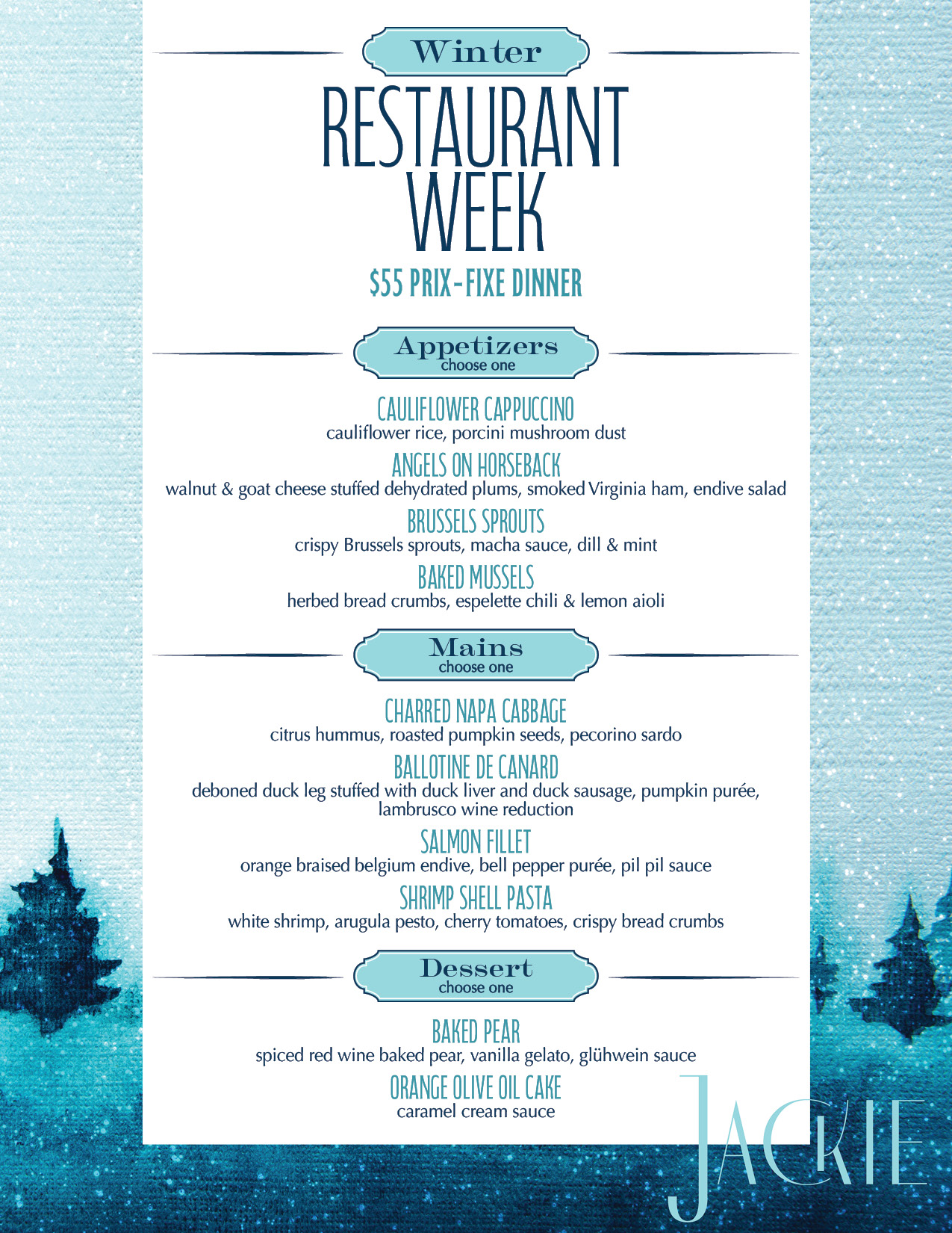 Warm up your winter nights this January with a seasonal feast curated to satisfy any palate. From January 19-26, enjoy a prix-fixe three-course dinner for just $55 per person.